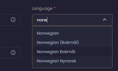 Norwegian, Norwegian Bokmål and Norwegian (Bokmål).