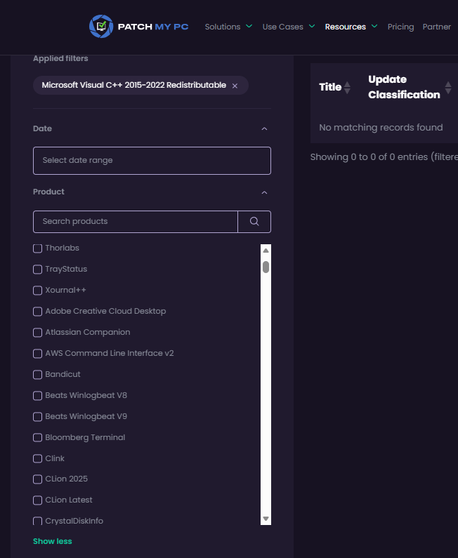 Catalog Release History -- Filters -- Product are not listed in alphabetical order