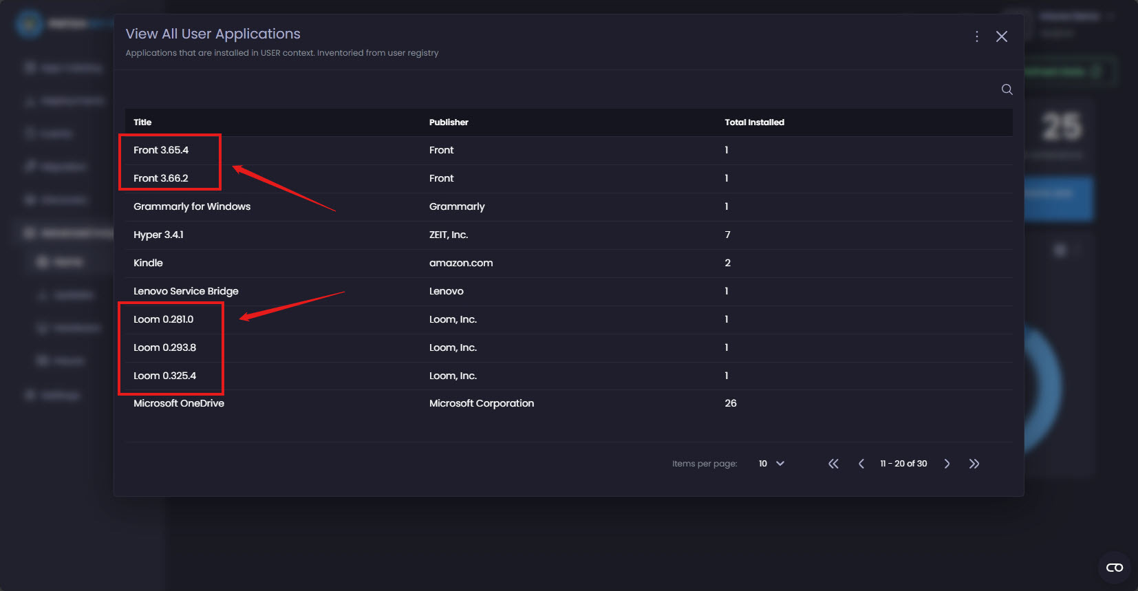 The "System Installed Win32 Apps" contains version specific data (see attached screenshot). This request is to normalise the records, e.g. so only "Loom" and "Front" is presented as a single record, and when drilled into, then reveal the unique versions installed on devices.
